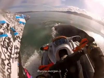 冰岛玩水上摩托意外撞到浮出水面的座头鲸