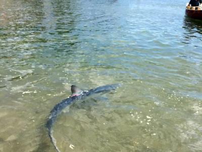 香港南丫岛洪圣爷湾泳滩泳客捕获小竹鲨(宽尾斜齿鲨) (神秘的地球报道)据东...