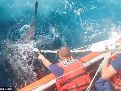 美国海岸警卫队成功解救一只被困渔网中重