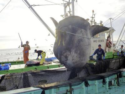 日本北海道函馆市海域捕获长逾3.5米重逾