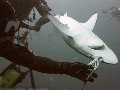 美国潜水员冒险为鲨鱼拔走鱼鈎