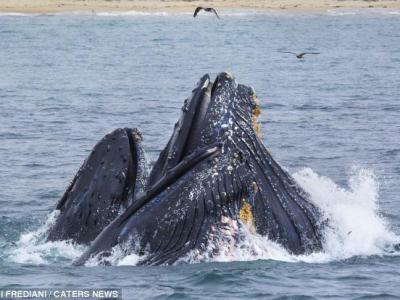 美国加州蒙特雷湾冲浪者近距离调戏座头鲸 (神秘的地球报道)《每日邮...