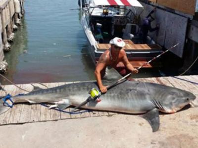 美国德克萨斯渔民捕获一头367公斤重的虎鲨