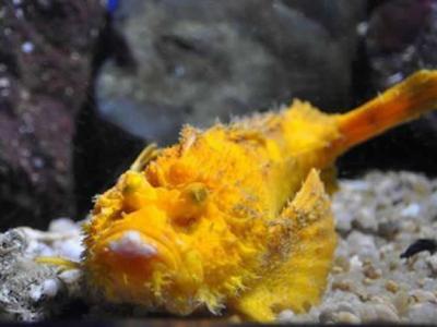 日本京都水族馆展出一条金色珍稀日本鬼鲉