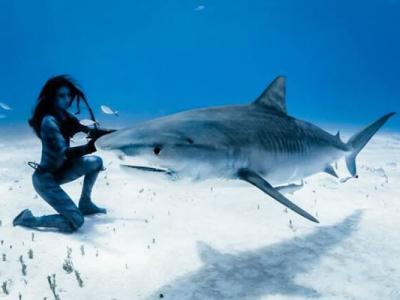 英国模特在巴哈马与世界上最危险的鲨鱼物
