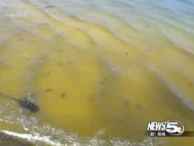 美国阿拉巴马州的橘子滩出现大群鲨鱼