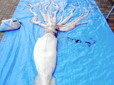 日本渔民在东京湾捕获一条活的“巨型鱿鱼”