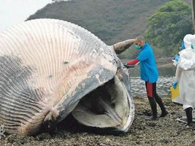10米巨鲸搁浅香港海滩 城市大学“拆肉”