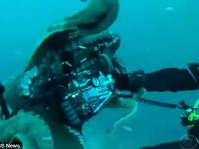 加州海底上演一场“人类章鱼大战”,一只巨型章鱼试图夺取潜水员水中的相机。 ...