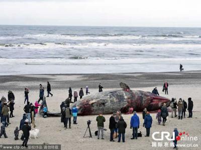 两只抹香鲸搁浅丹麦海滩被当场解剖