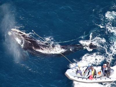 美国佐治亚州海岸惊现一头拖着85米长商业捕鱼线的濒危露脊鲸 (神秘的地球)...