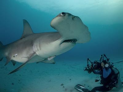 摄影师在巴哈马比米尼群岛附近海域面对面拍摄双髻鲨 (神...