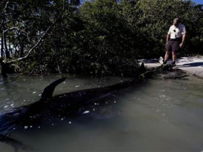 有8头领航鲸在美国佛罗里达州海岸附近死亡 当地海岸警卫队封锁了通往海岸的道...