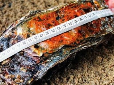 丹麦瓦登海研究中心研究小组最新捕捞到世界上最大的牡蛎 这只牡蛎仍存活着,它...