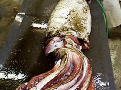 被人类捕获的深海巨大鱿鱼 深海里栖息着恐怖食人巨鱿,它们体型庞大神出鬼没,...