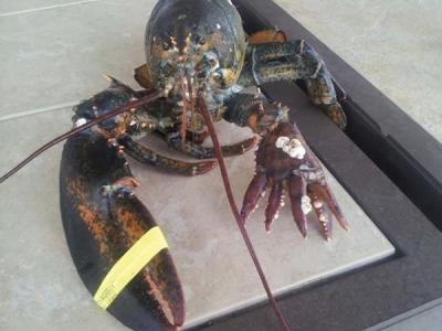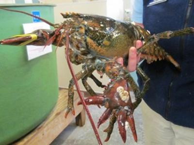 美国麻州渔夫在大西洋海域捕获“六爪龙虾”