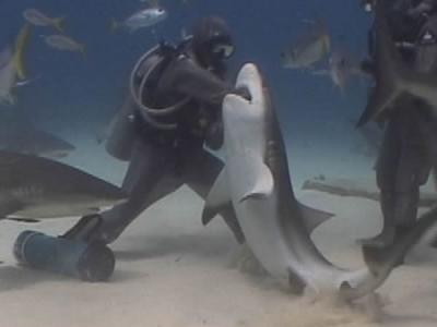 潜水员冒险伸手入鲨鱼口取鱼钩
