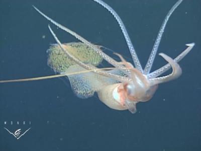 葛氏双鳍鱿生活在海面下500米到1500米的水域中。 研究人员之前只能够依靠乌贼...