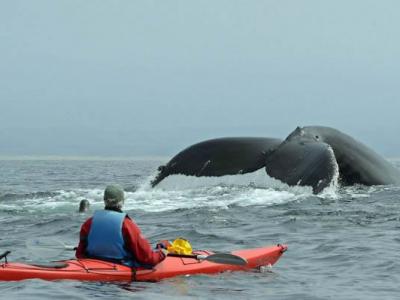 划着小皮艇近距离接触座头鲸 划着小皮艇近距离接触座头鲸 划着小皮艇近距离...
