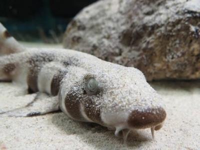 一条幼年期的棕色条纹竹鲨 研究人员发现仍然在卵囊内发育的条纹斑竹鲨就能检测...
