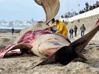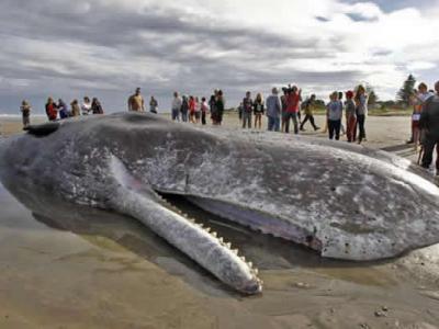 当地时间2013年1月25日,法国一个海滩出现18米长的鲸鱼尸体。 法国海滩现18米长...