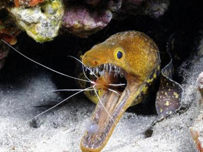 尖牙鳗鱼长着几厘米长的玻璃状牙齿,十分锋利,它的身体最大可生长至120厘米 ...