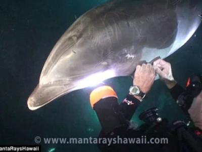 美国夏威夷海域一条海豚被钓鱼线缠绕,游向潜水员“求助”获救。 在美国夏威夷一...