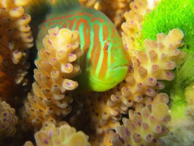 这是生活在珊瑚(Acropora nasuta)的虾虎鱼(Gobiodon histro) 研究人员报告说...