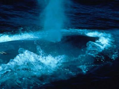 蓝鲸在捕食磷虾之前会在水中快速地旋转