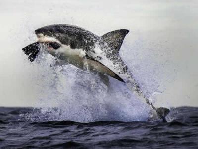 摄影师设下“海豹”诱饵抓拍大白鲨凌空捕猎