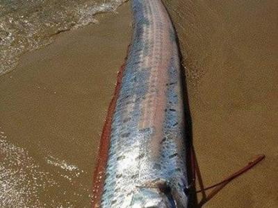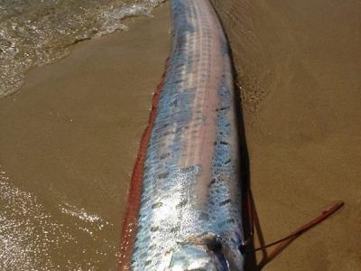 6米长罕见皇带鱼被冲上墨西哥海岸