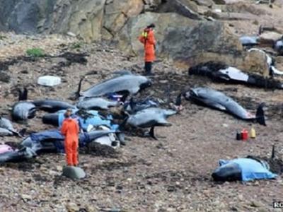 探索大量鲸鱼搁浅的真正原因 本月早些时候有22只巨头鲸因为搁浅在Pittenweem和A...