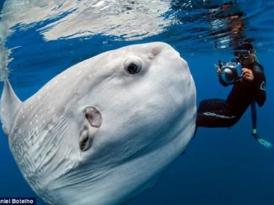 这条翻车鱼像宠物狗一样尾随丹尼尔游泳 巴西摄影师丹尼尔把他所拍摄的翻车鱼(su...