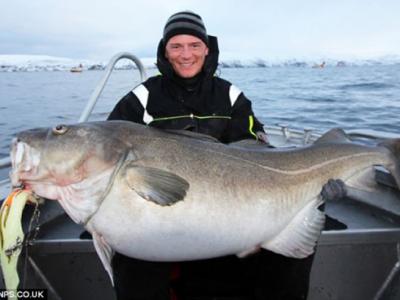 钓鱼者在挪威附近海域捕获一条重42公斤的鳕鱼 钓鱼者在挪威附近海域捕获一条长达...