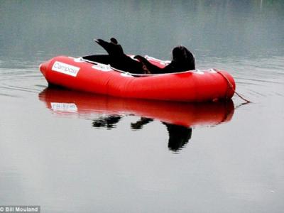 英国德文郡一只海狮爱上乘坐气垫船晒太阳