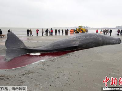 13米巨型抹香鲸在比利时一海滩搁浅 当地时间2月8日,一头长约13米的巨型抹香鲸...