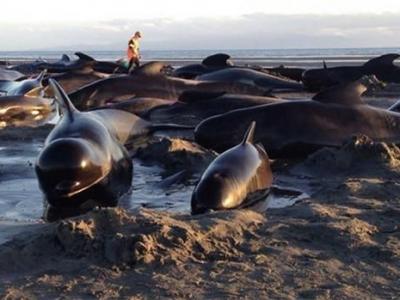 90头巨头鲸在新西兰南岛海滩搁浅 90头巨头鲸在新西兰南岛海滩搁浅 90头巨头...