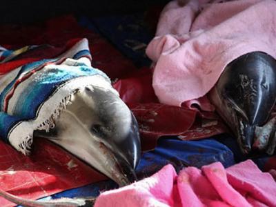 获得救助的两只海豚(资料图) 据英国《每日邮报》2月5日报道,自1月12日以来,美...