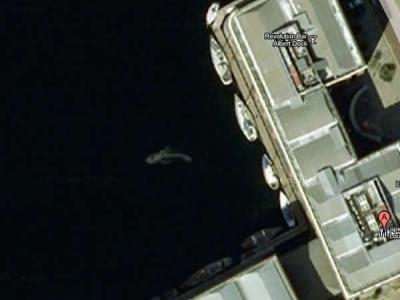 谷歌地球发现英国一个码头出现的神秘海洋生物 英国默西赛德郡利物浦有一名网友S...
