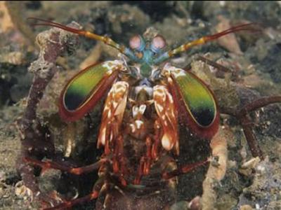 英国渔民捕捉到凶猛螳螂虾 虾本是人类餐桌上的美味,但近日出现在英国海域里的螳...