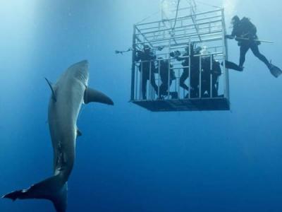 这张照片摄于墨西哥附近瓜达卢佩岛水下40英尺(约合12米)的地方。游客只要支付370...