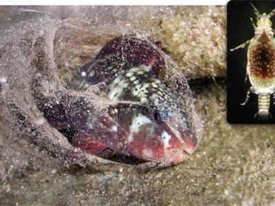 即便是海洋中也有臭虫。微小的吸血甲壳纲动物(插图)漫游于海洋中,并紧紧咬住路...
