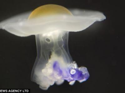 这只水母看起来像是落入一锅水里的荷包蛋。这种动物的刺对人类没有任何影响。 ...