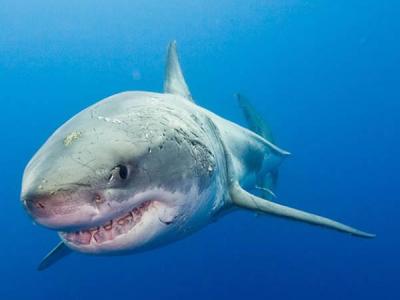 上个月一群大白鲨迁徙到墨西哥瓜达鲁普岛附近海域,以捕食每年一度聚集到那里的大批...