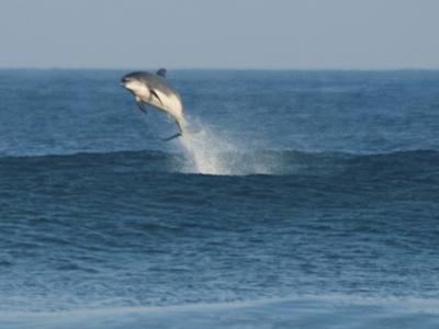 海豚在海中表演跳高。看到这一景象,清晨出海冲浪的人们自然欣喜若狂 爱玩的海...
