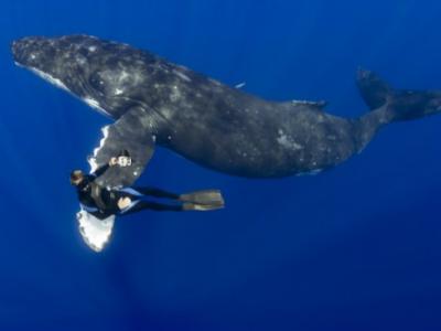 潜水员近距离接触座头鲸
