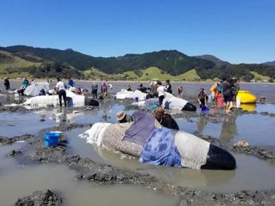 新西兰北岛豪拉基湾有约25只鲸鱼因离岸边过近而搁浅(神秘的地球uux.cn报道)据ETt...