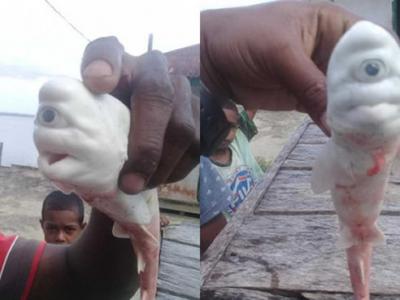 印尼渔民在马鲁古省沿海捕获一条母鲨鱼 剖腹后发现“独眼白鲨鱼”(神秘的地球uux....