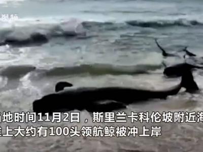 120头领航鲸(巨头鲸)在斯里兰卡科伦坡附近的帕讷杜勒海岸集体搁浅(神秘的地球uu...