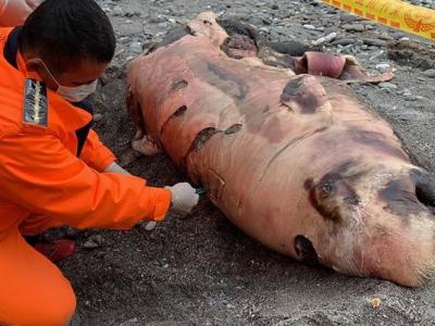 台湾苗栗县通霄精盐厂后方海岸区发现保育类江豚搁浅死亡(神秘...